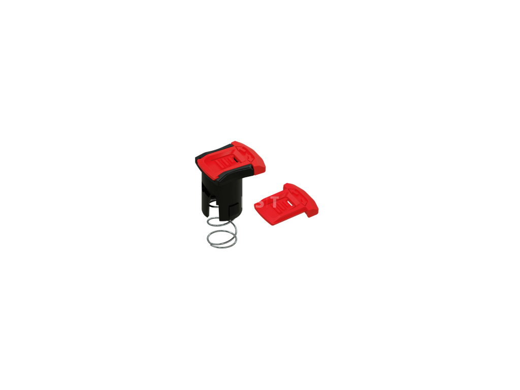 Červená brzdová destička pracuje s tlakovou funkciou, je navrhnutá ako opotrebiteľná súčasť a možno ju v prípade potreby ľahko vymeniť. Výmenu možno vykonať bez demontáže brzdy: použite úzky plochý skrutkovač, jemne nadvihnite vložku, posuňte v smere šípky a vymeňte. Tým sa obnoví optimálny brzdný účinok CB 260 Cable Box.