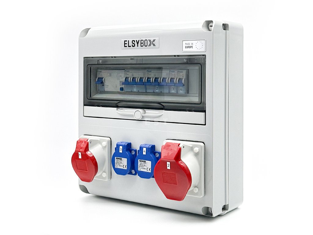ELSYBOX P693F01120F Zásuvková skrinka 1x CEE 16A, 1x 32A, 2x 230 V, IP44, istená, s prúdovým chráničom