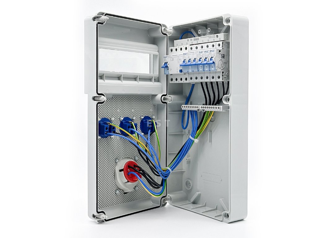 Táto kombinácia zásuviek umožňuje bezpečné a univerzálne pripojenie rôznych zariadení. Vysokokvalitné komponenty značiek Gewiss, Doepke a Walther-Werke zabezpečujú spoľahlivé a flexibilné napájanie.