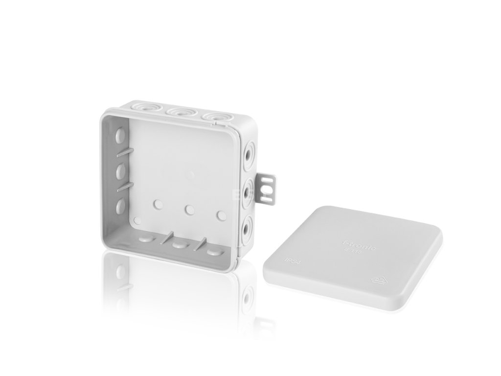 Krabica ftronic 7340038 (typ E113) je určená na inštaláciu káblových rozvodov v priestoroch vyžadujúcich ochranu proti prachu a striekajúcej vode (IP54). Konštrukcia so stabilným telom a zosilneným vekom odoláva krúteniu. Vonkajšie upevňovacie pätky s otvormi umožňujú dodatočné vyrovnanie polohy po vyvŕtaní otvorov a fixáciu pomocou káblových viazacích pások.