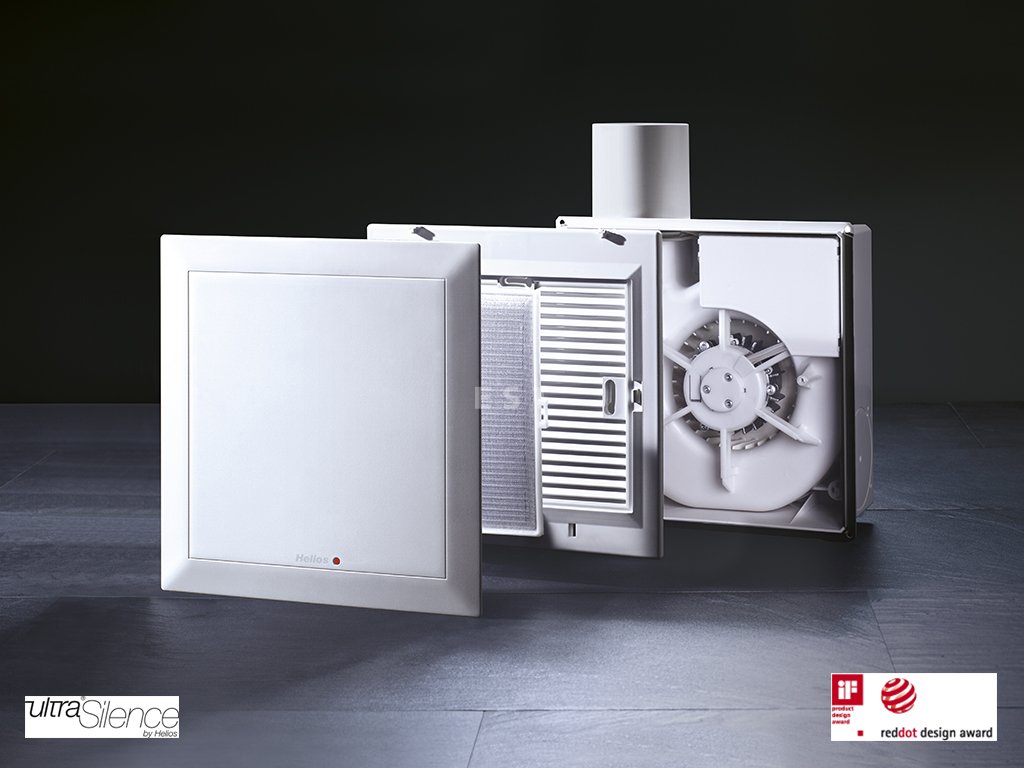 Dokonalý tvar. Čelná strana ventilátora s minimalistickým, ultratenkým dizajnom a ušľachtilým vzhľadom zakrýva ventilačnú jednotku. Vzduch je nasávaný zo strany, čo zabraňuje ukladaniu nepríjemných nečistôt. Ventilátor získal mnoho prestížnych dizajnových ocenení.