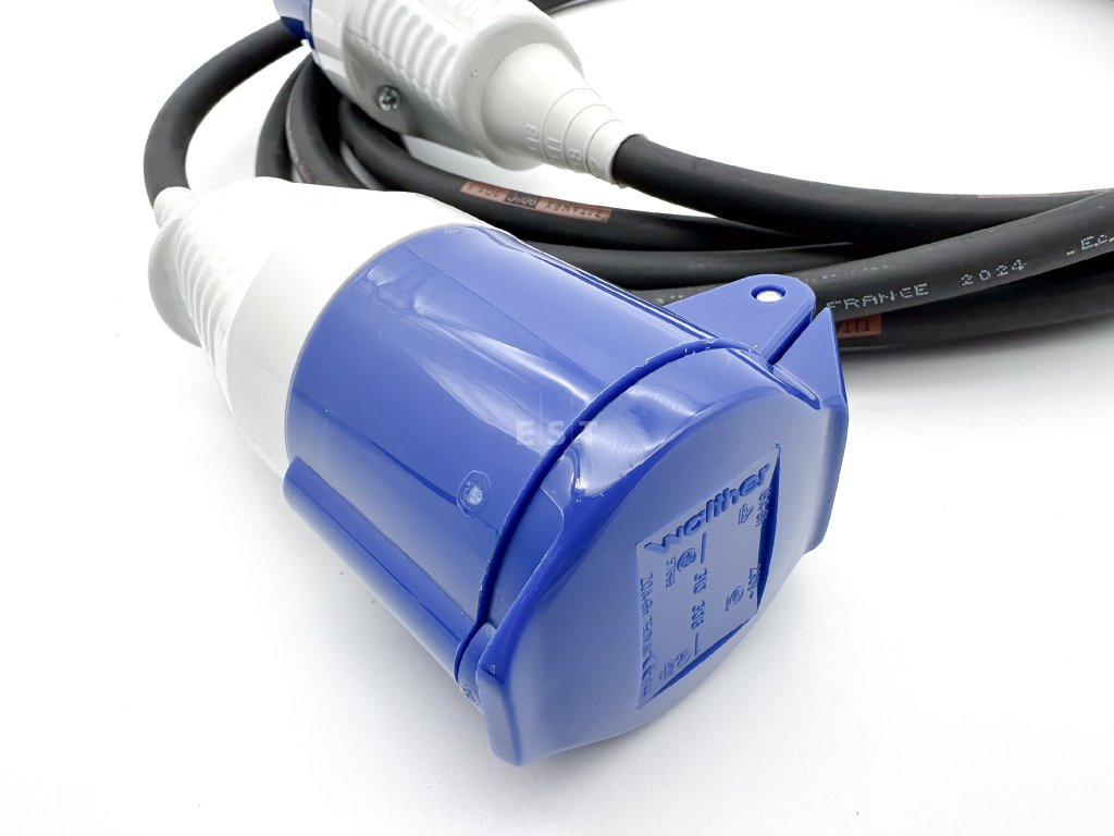 Predlžovací kábel s CEE vidlicou a spojkou od nemeckého výrobcu Walther-Werke* (16A 3P 230V 6h IP44) a vysokokvalitným gumeným káblom TITANEX H07RN-F 3x2,5mm² (3G2,5) je ideálnym riešením pre použitie na stavbách, v dielňach, v poľnohospodárstve alebo na záhrade.