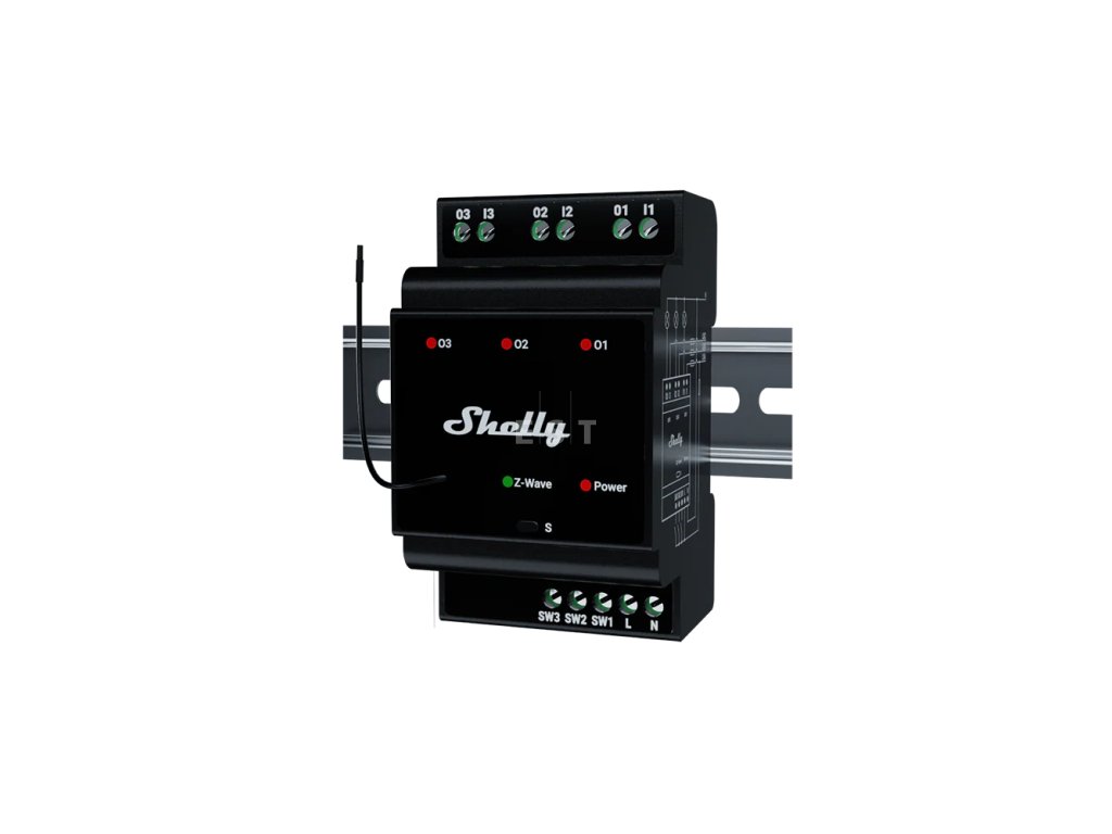 SHELLY Wave Pro 3 LR – Trojkanálový spínací modul so suchým relé, montáž na DIN lištu (Z-Wave® Long Range)