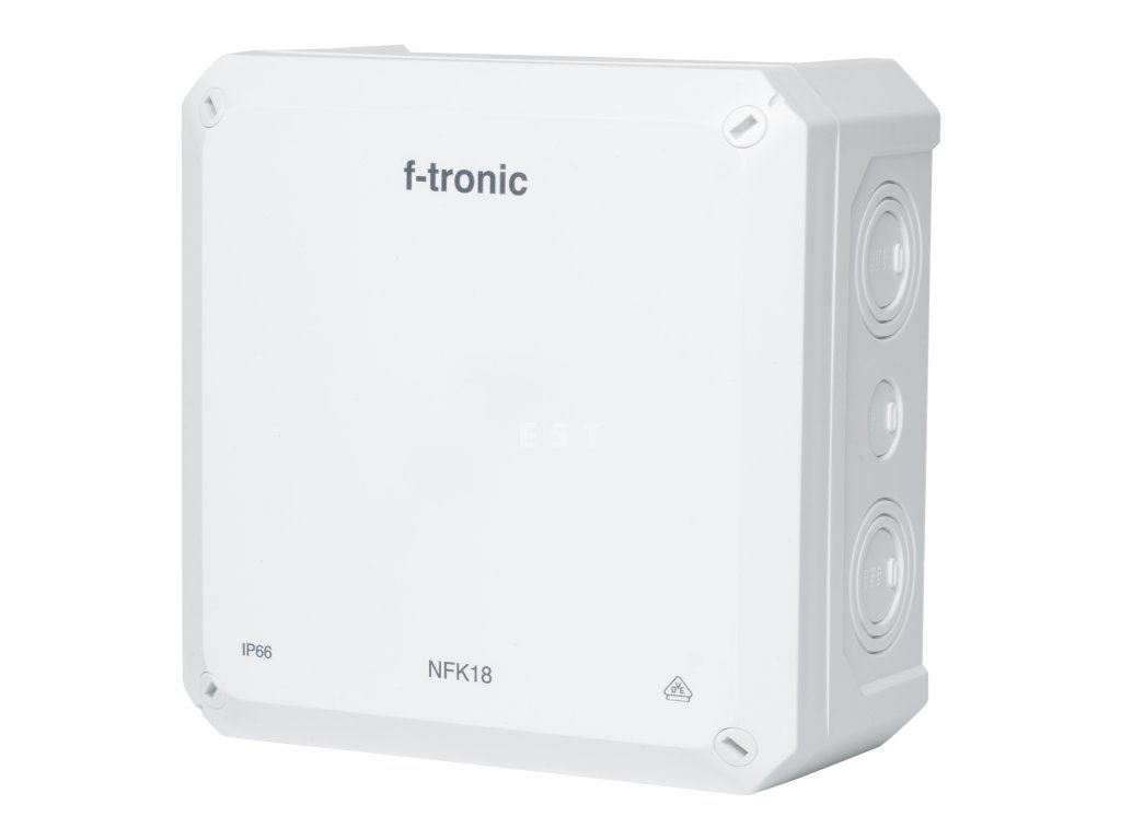 Rozvodná krabica NFK18WS zo série NEPTUN Compact od firmy f-tronic je určená na montáž na stenu alebo strop. Vyhotovenie s rozmermi 180 × 180 × 93 mm je vhodné pre elektroinštalácie vo vlhkých priestoroch aj v chránenom exteriéri. Stupeň krytia IP66 zabezpečuje spoľahlivú ochranu proti prachu a silnému prúdu vody.