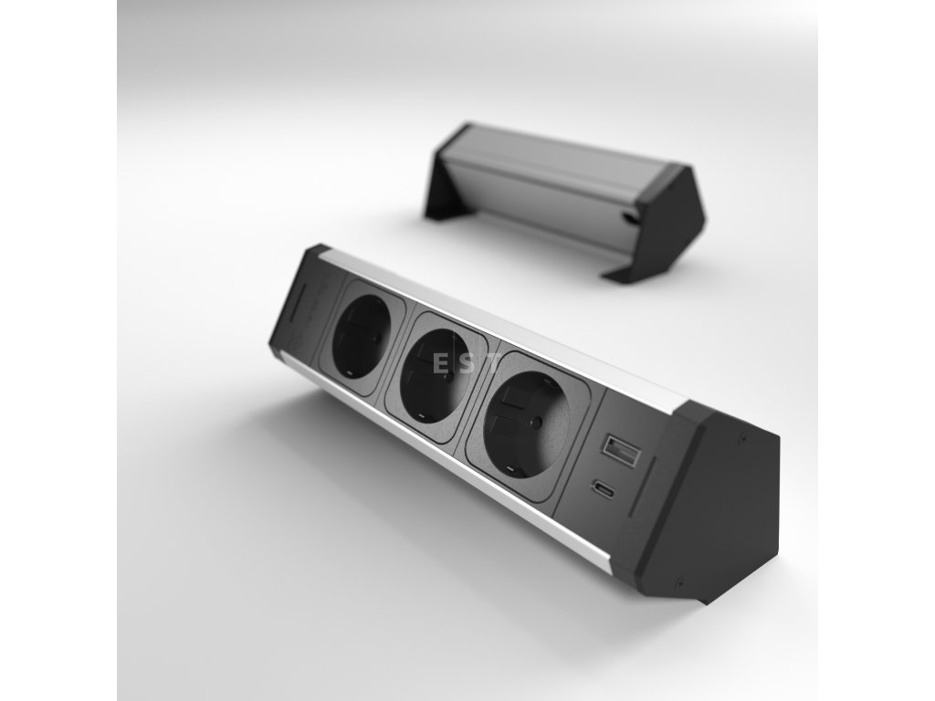 ASA 06123E00101 VERSADESK 3x zásuvka, 1x nabíjačka USB A+C, 1x voľná pozícia, kábel 0,5 m, GST, Čierna