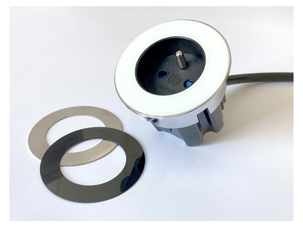 ASA 06030E00007 VERSADOT Vstavaná zásuvková jednotka, 1x zásuvka, kábel 2 m, vidlica samostatne, dekoračné krúžky: hliník, biela, čierna