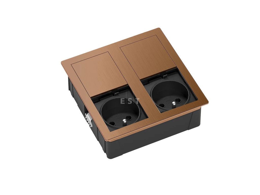 Luxusná vstavaná zásuvková jednotka VersaHit do kuchynskej linky. Obsahuje 2× sieťové zásuvky a flexibilné pripojenie – kábel (2 m) s voľným koncom (vidlica je pribalená samostatne). Rámček a viečka sú vyrobené z odolnej zliatiny Zamak (prípadne v matnom laku) vo farbe medená. Vďaka nezávislým posuvným krytom môžete zásuvky skryť, keď ich nepoužívate. S krytím IP54 (pri zatvorení) je táto vodeodolná zásuvka bezpečná proti striekajúcej vode a prachu. Pripojovací kábel má voľný koniec (dutinky), aby ho bolo možné ľahko pretiahnuť malým montážnym otvorom. Vidlica je súčasťou balenia (zapojenie zverte kvalifikovanej osobe).