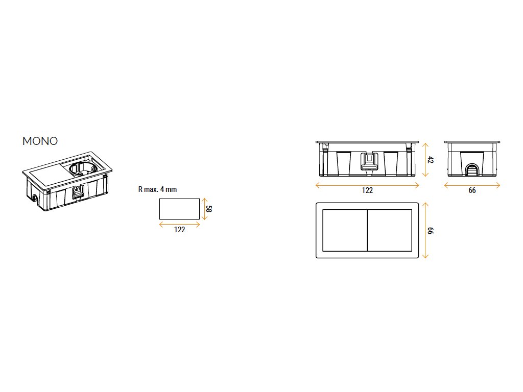 Telo jednotky je vyrobené z odolného technopolyméru, zatiaľ čo rámček a ochranný kryt sú zo zinkovej zliatiny Zamak, ktorá zaisťuje pevnosť, dlhú životnosť a prémiový vzhľad v odtieni imitácia kartáčovanej ocele. Unikátny systém posuvného krytu umožňuje odkryť konektory iba vtedy, keď ich práve potrebujete, zatiaľ čo v nečinnosti zostávajú skryté a chránené. Tento produkt kombinuje kompaktné rozmery a vysokú odolnosť.