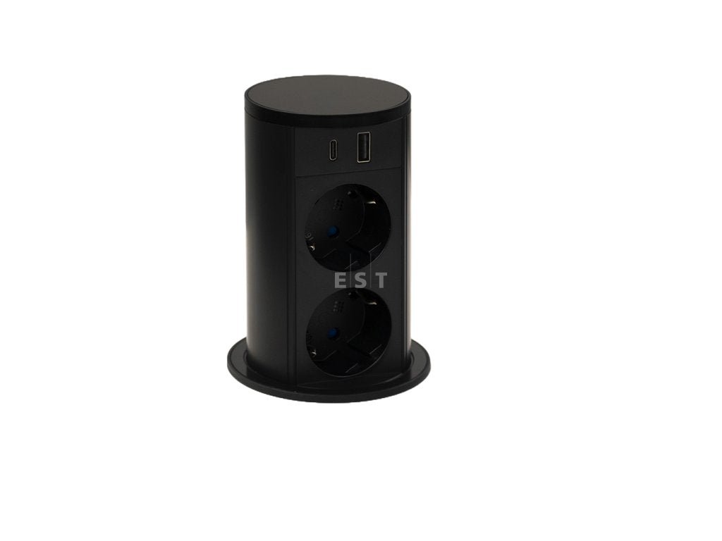 Výsuvný zásuvkový stĺpik VersaLift ponúka 2 elektrické zásuvky a USB nabíjačku A+C, takže je možné pohodlne pripojiť elektrické zariadenia aj nabíjať mobilné prístroje priamo na pracovnej ploche. Vďaka krytiu IP54 (v zatvorenom stave) je chránený proti prachu a striekajúcej vode – ideálny aj do vlhkých či prašných prostredí, napríklad kuchýň.