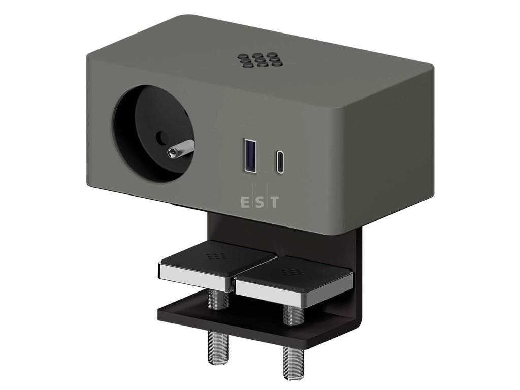 ASA 06037E00079 VERSAQ Stolná zásuvková jednotka, 1x zásuvka, 1x nabíjačka USB A+C, kábel 0,5 m s GST, šedá