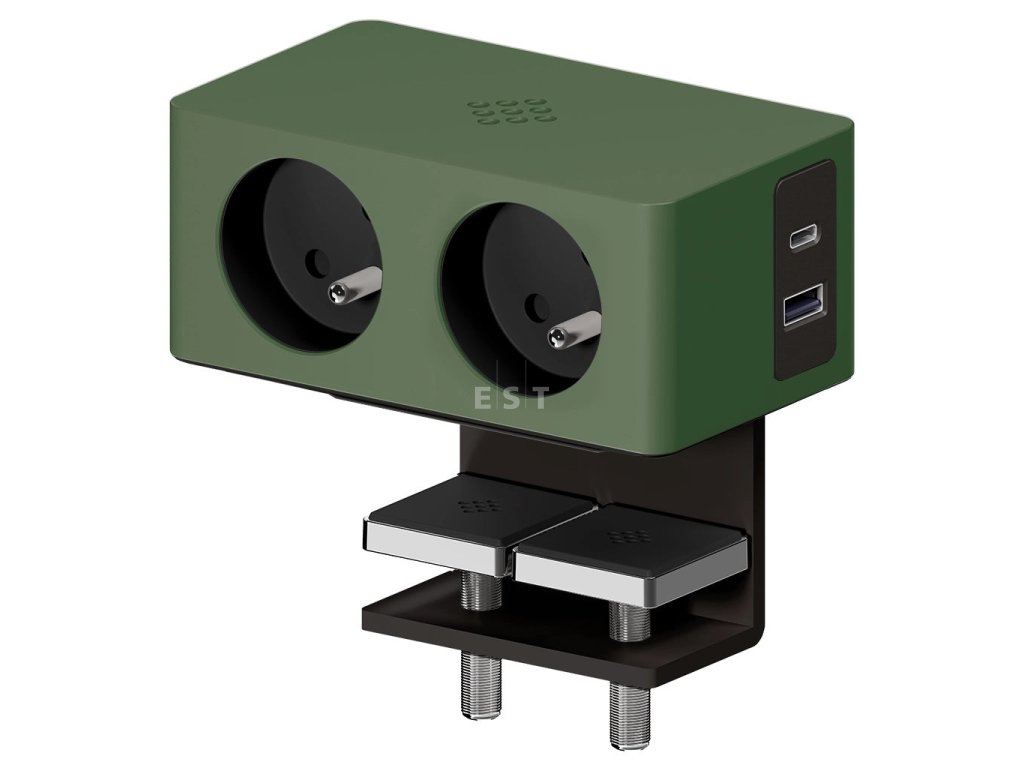ASA 06037E00093 VERSAQ Stolná zásuvková jednotka, 2x zásuvka, 1x nabíjačka USB A+C, kábel 0,5 m s GST, zelená