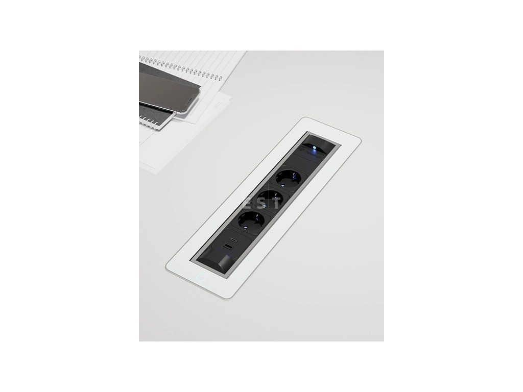 ASA 06024E00030 VERSATURN 3.0 Vstavaná otočná zásuvková jednotka, 2x zásuvka, 1x nabíjačka USB A+C, 1x RJ45, kábel 2 m, vidlica samostatne, biele sklo