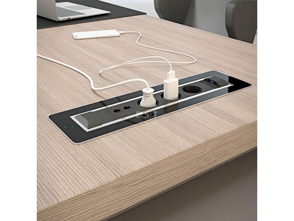 Versaturn 3.0 od talianskeho špecialistu ASA Plastici predstavuje absolútnu špičku medzi vstavanými systémami. Táto motorizovaná jednotka je navrhnutá pre náročných používateľov, ktorí vyžadujú dokonalé spojenie moderných technológií, vysokej funkčnosti a luxusného dizajnu. Elegantný povrch v kombinácii s hliníkovým rámom z nej robí prestížny doplnok každého manažérskeho stola či konferenčnej plochy.