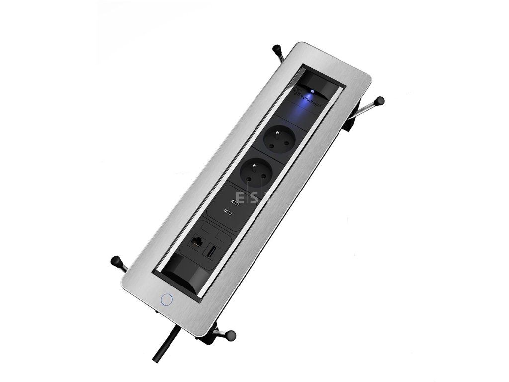 ASA 06024E00072 VERSATURN 3.0 Vstavaná otočná zásuvková jednotka, 3x zásuvka, 1x nabíjačka USB C+C, kábel 2 m, vidlica samostatne, imitácia kartáčovanej ocele
