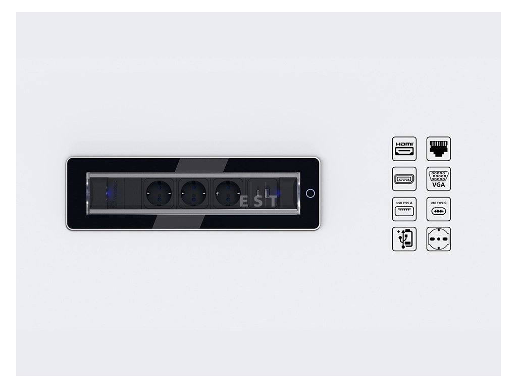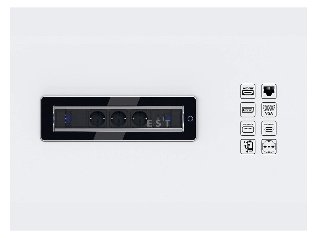 Táto rada ponúka okrem štandardných zásuviek aj moderné možnosti nabíjania a konektivity pre prenos dát aj obrazu. Prívod energie je riešený káblom zakončeným samostatnou vidlicou, čo výrazne uľahčuje inštaláciu a prevlečenie kábla cez nábytkové priechodky.